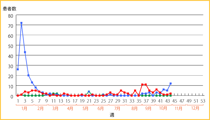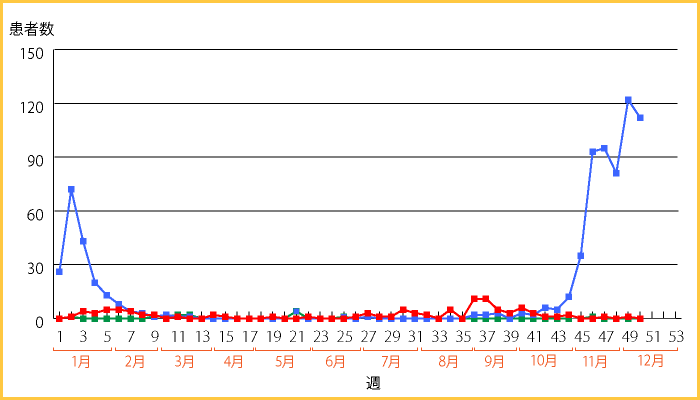 インフルエンザが流行しています。2025年もコロナ感染者数とインフルエンザ患者数をグラフにします。